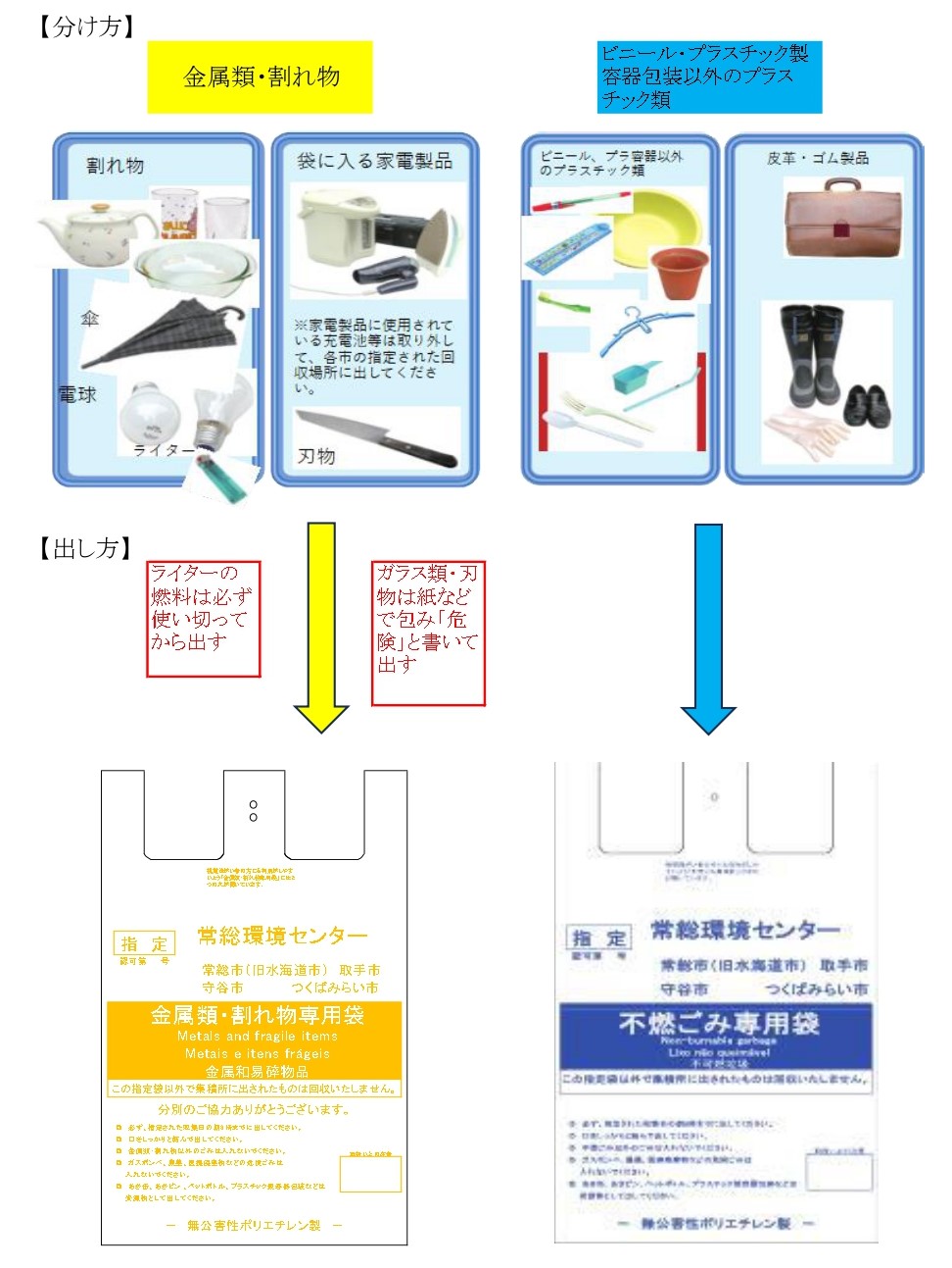令和8年4月1日からは、必ず「金属類・割れ物専用袋」でお出しください